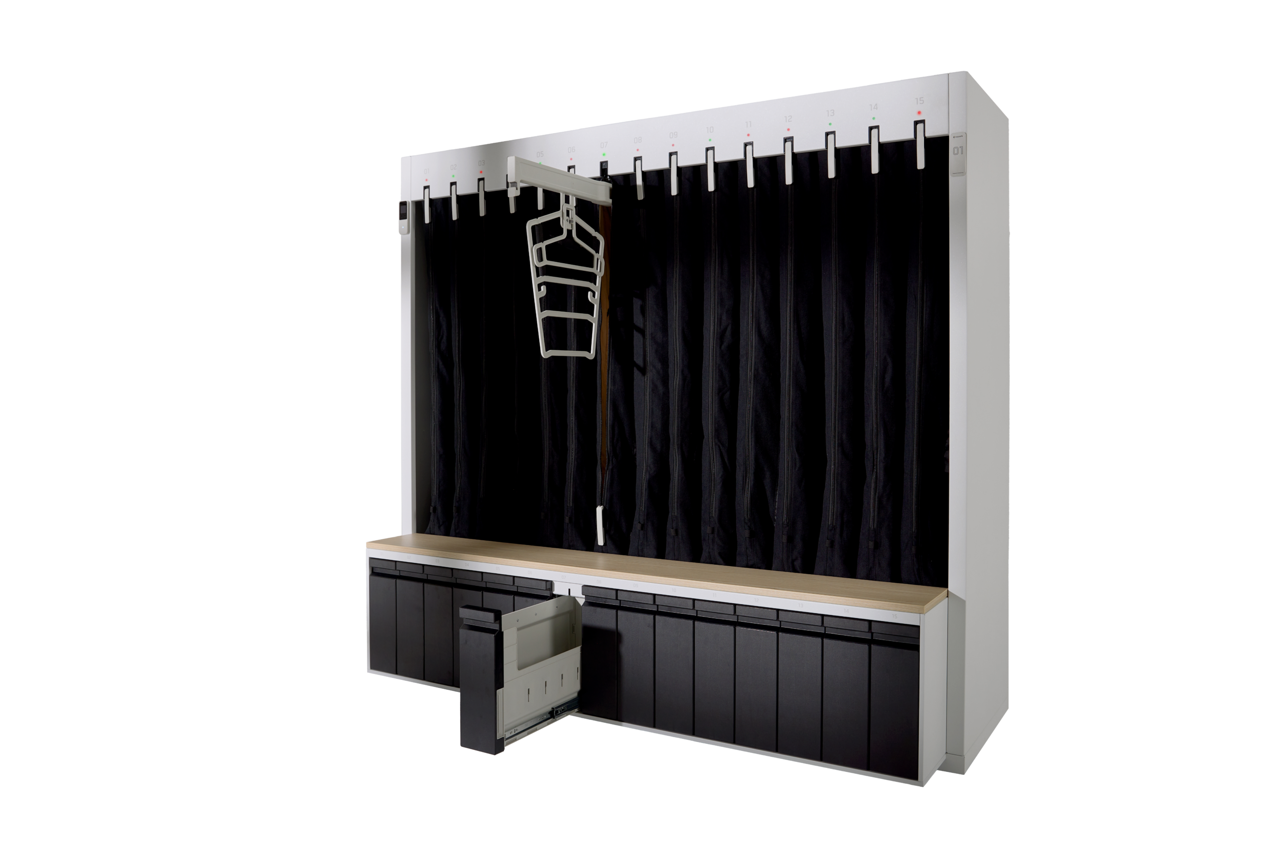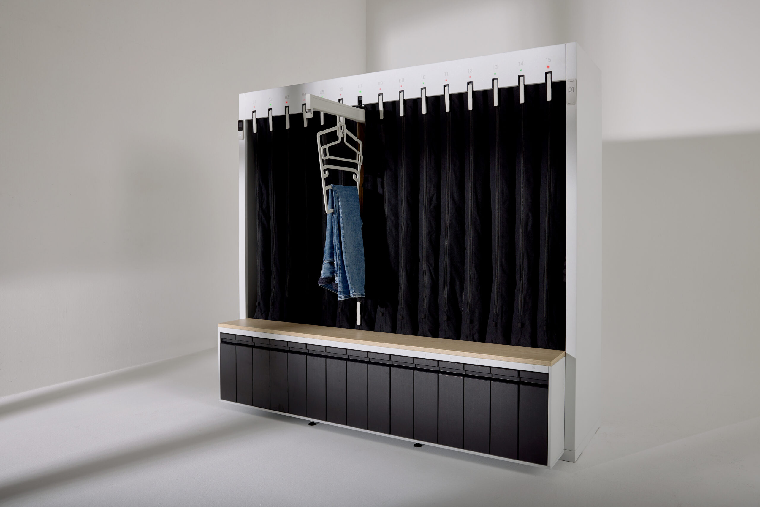 Lösningen minskar ytan som krävs i exempelvis omklädningsrum och vårdmiljöer, samtidigt som den förenklar hantering och spårbarhet av personliga tillhörigheter.